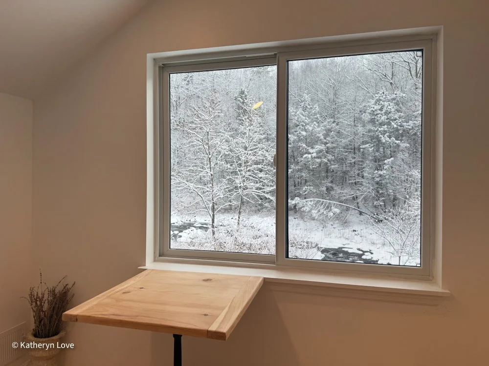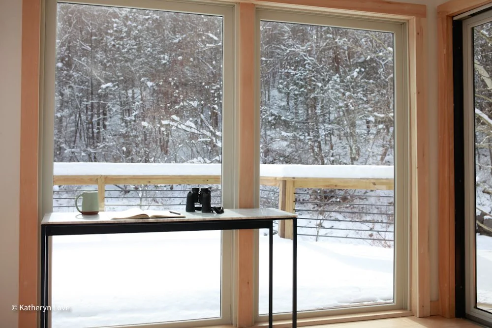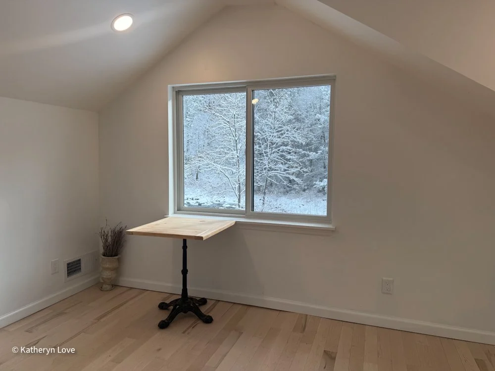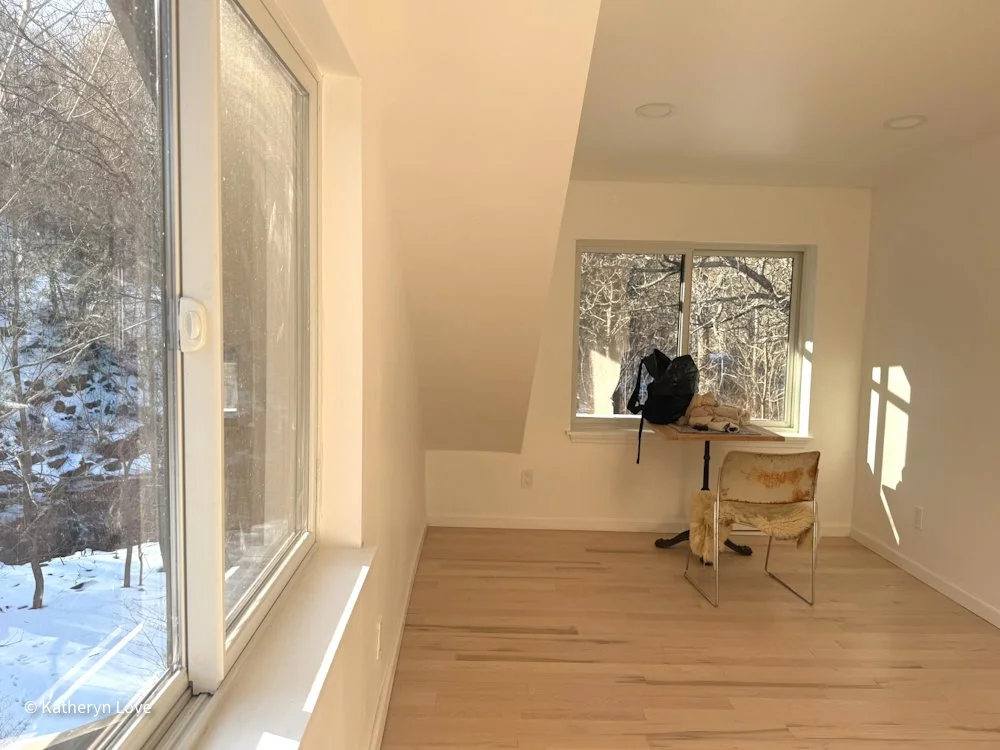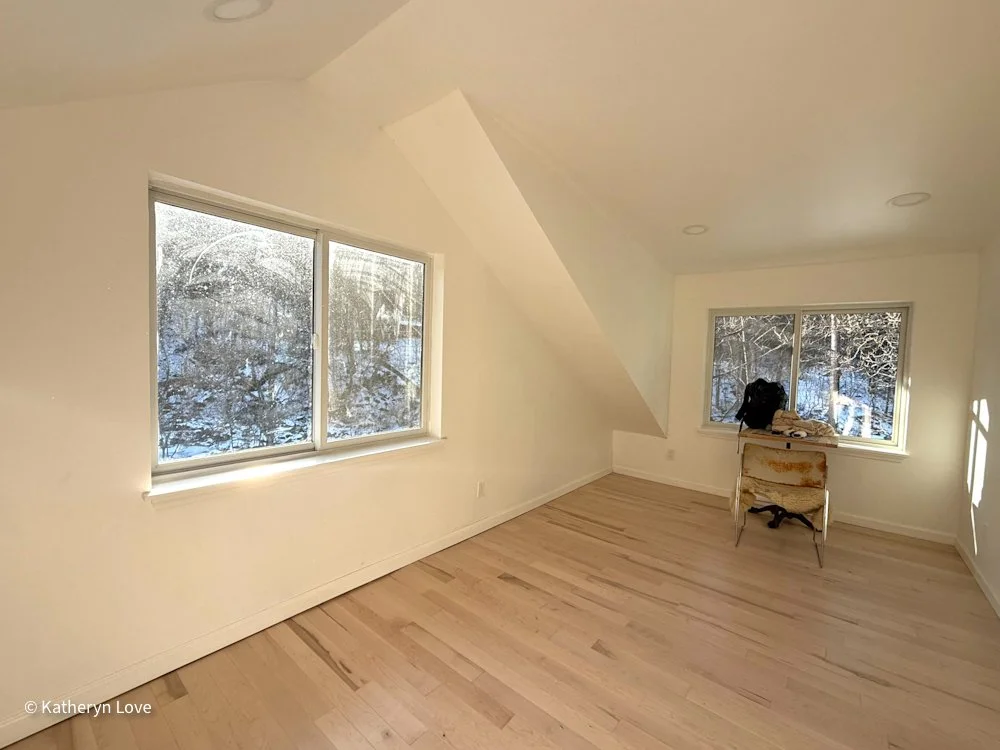 • bedroom 1 • stream view • two window options • direct sunlight - changing mood throughout the day (south facing) • maple floors