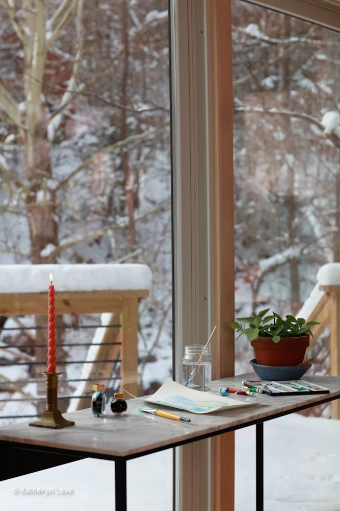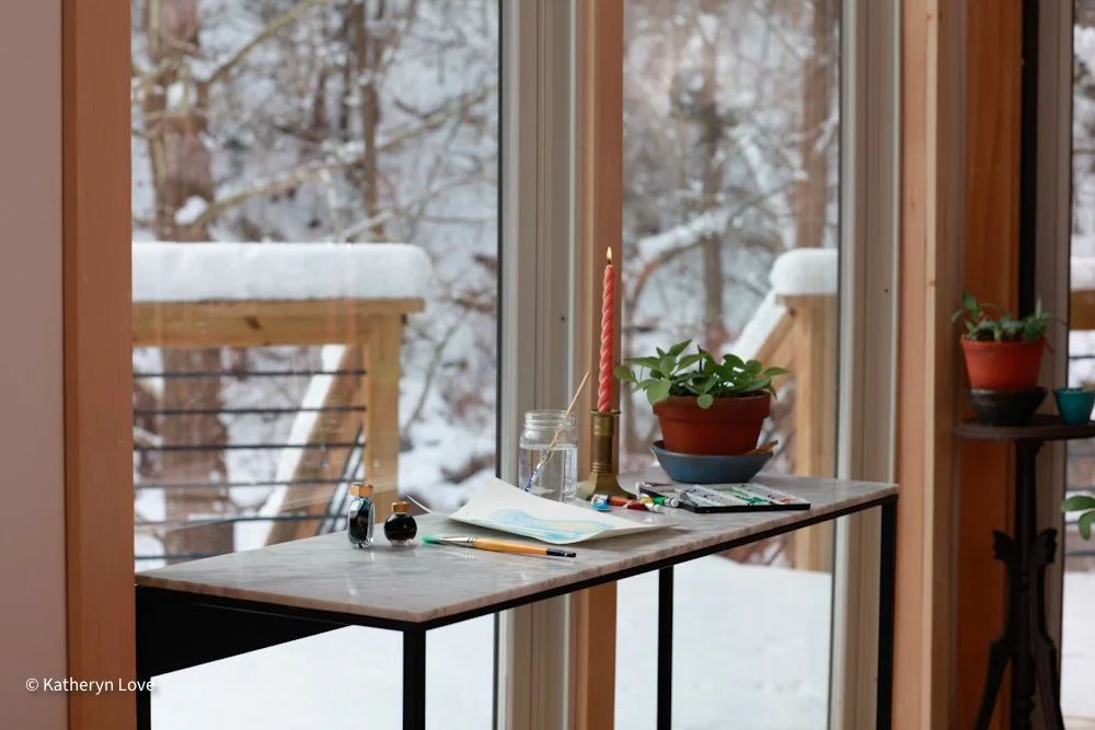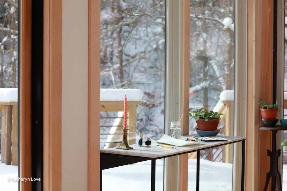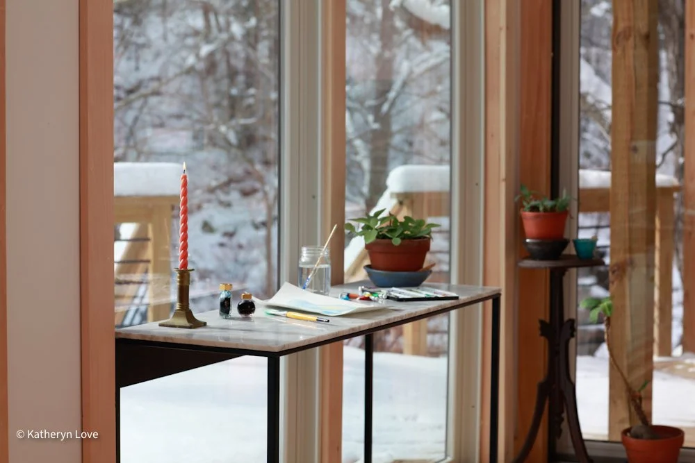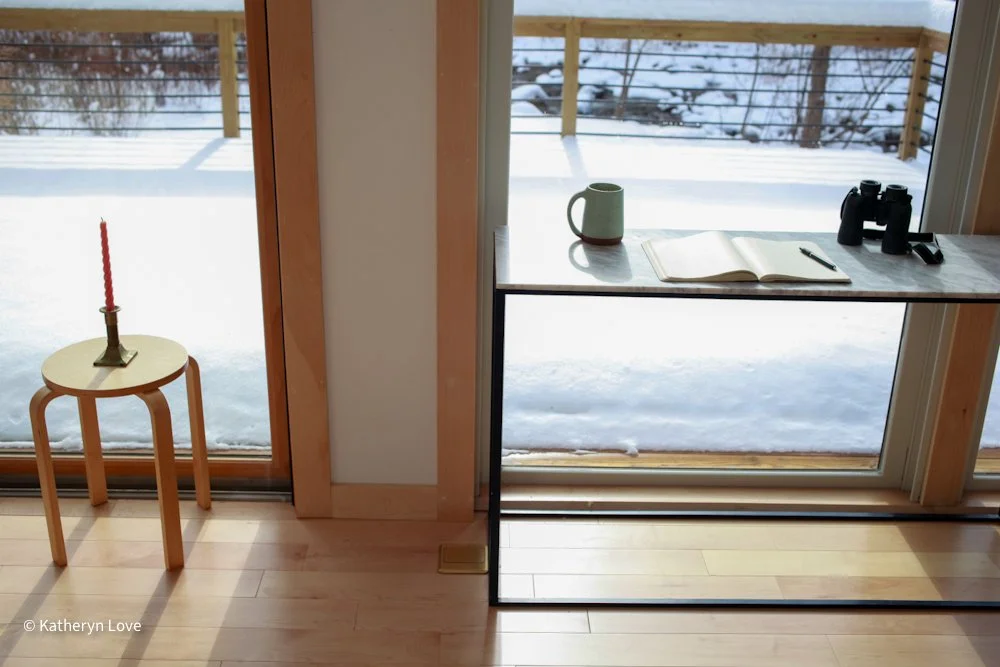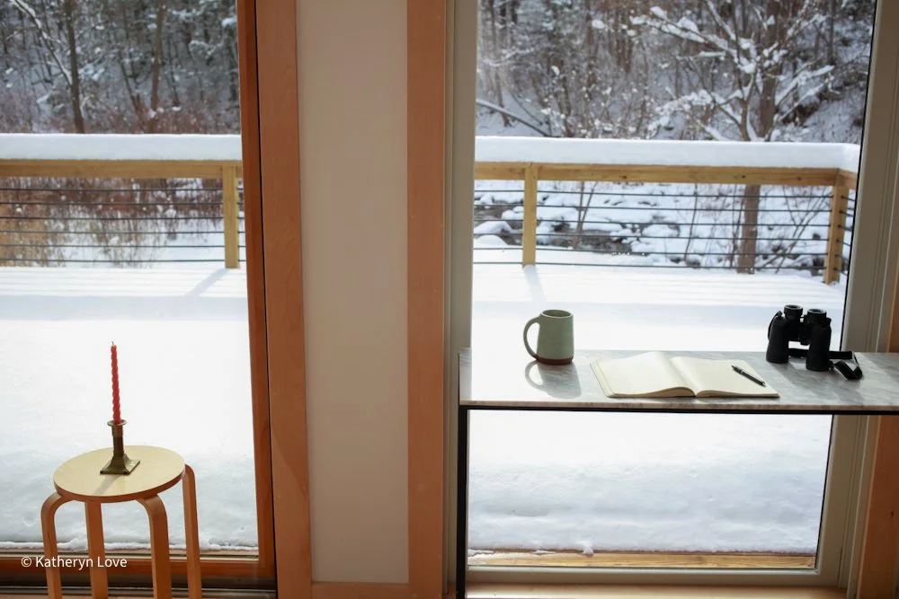 • bedroom 1 • stream view • two window options • direct sunlight - changing mood throughout the day (south facing) • maple floors
